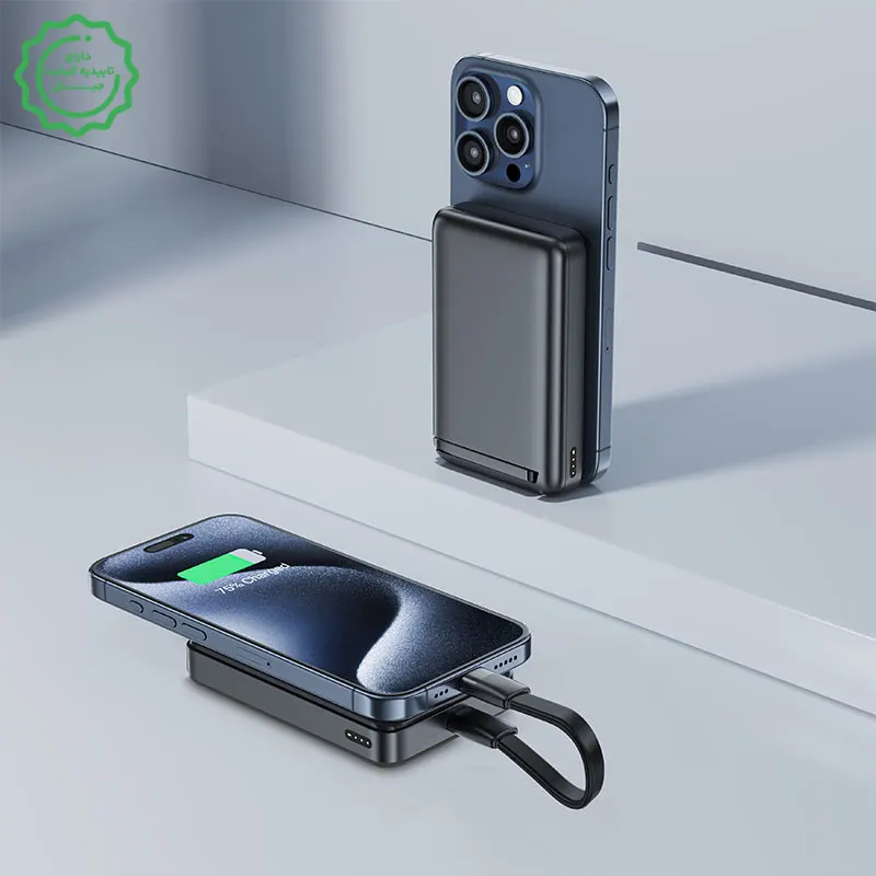 پاوربانک مگ سیف 10.000 میلی آمپر به توان 30 وات QI2 با استند و کابل مدل M11 (نسخه اورجینال + گارانتی شرکتی)