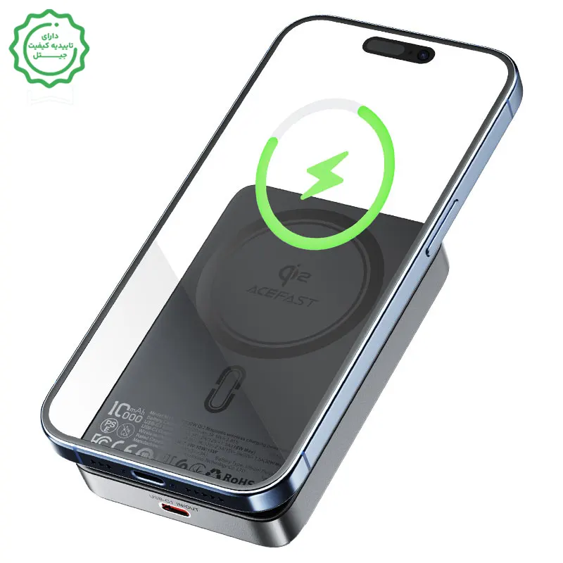 وقتی میخواهی یک پاوربانک «همهفنحریف» داشته باشی که هم سریع سیمی شارژ کند و هم وایرلس مگنتی استاندارد QI2 را پشتیبانی کند،پاوربانک QI2 مگنتی ACEFAST M11 دقیقاً همان انتخاب است: ظرفیت ۱۰٬۰۰۰mAh (نامی ≈ ۶٬۰۰۰mAh)، خروجی USB-C تا ۳۰W (PD/PPS/QC …)، شارژ وایرلس مگنتی تا ۱۵W با همترازی دقیق، استند تاشو یکپارچه برای تماشا/کال، بدنهی جمعوجور و نشانگر LED وضعیت باتری/وایرلس.
