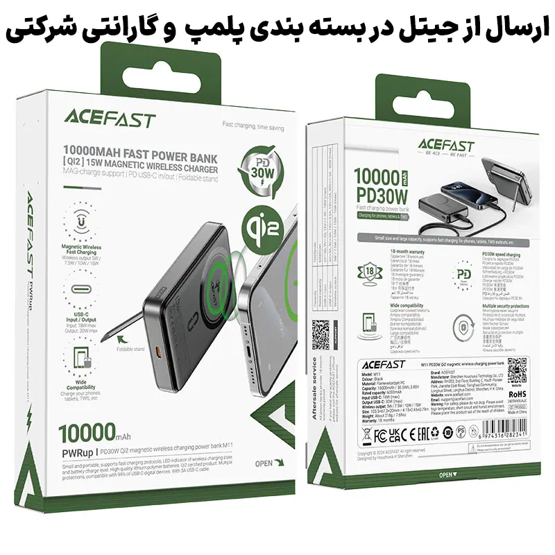 | نام/مدل | ACEFAST M11 PD30W 10000mAh Magnetic Wireless Power Bank (اورجینال) |