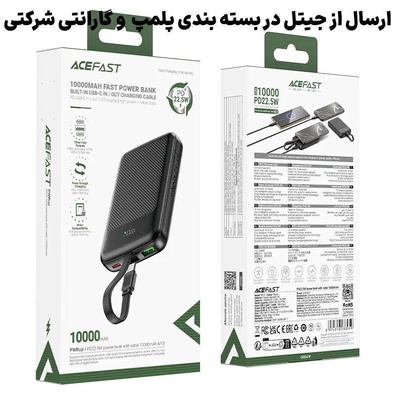 | نام/مدل | ACEFAST M13 PD22.5W 10000mAh with cable (اورجینال) |
