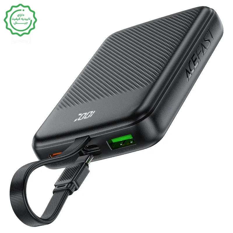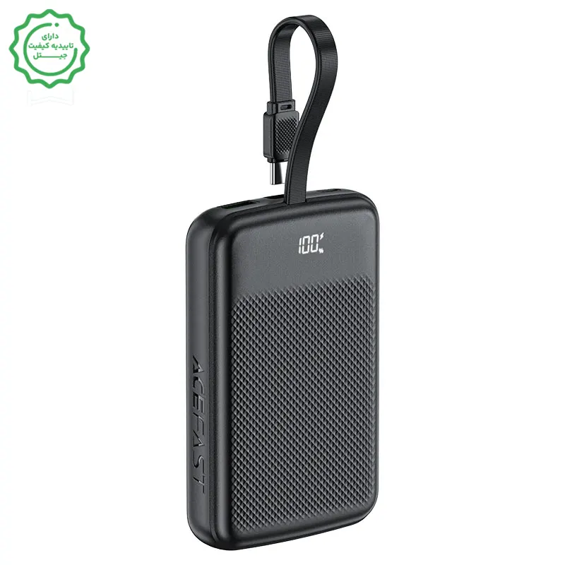 پاوربانک ۱۰٬۰۰۰ میلیآمپر ۲۲.۵ وات با کابل همراه مدل ACEFAST M13 — توان PD22.5W واقعی، کابل Type-C داخلی، نمایشگر LED