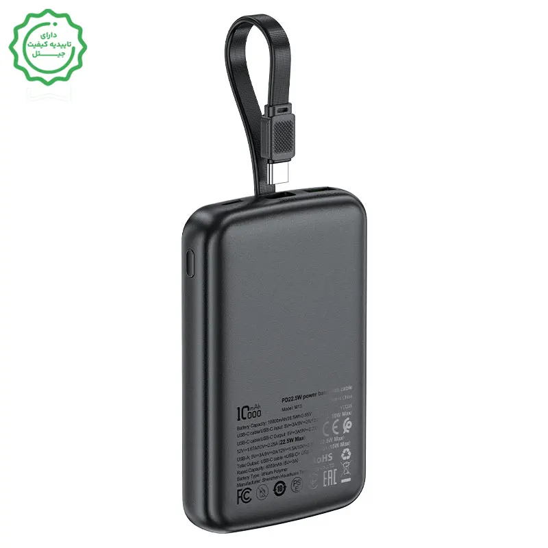 پاوربانک 10.000 میلی آمپر با توان 22.5 وات PD و کابل همراه مدل M13 (نسخه اورجینال + گارانتی شرکتی)