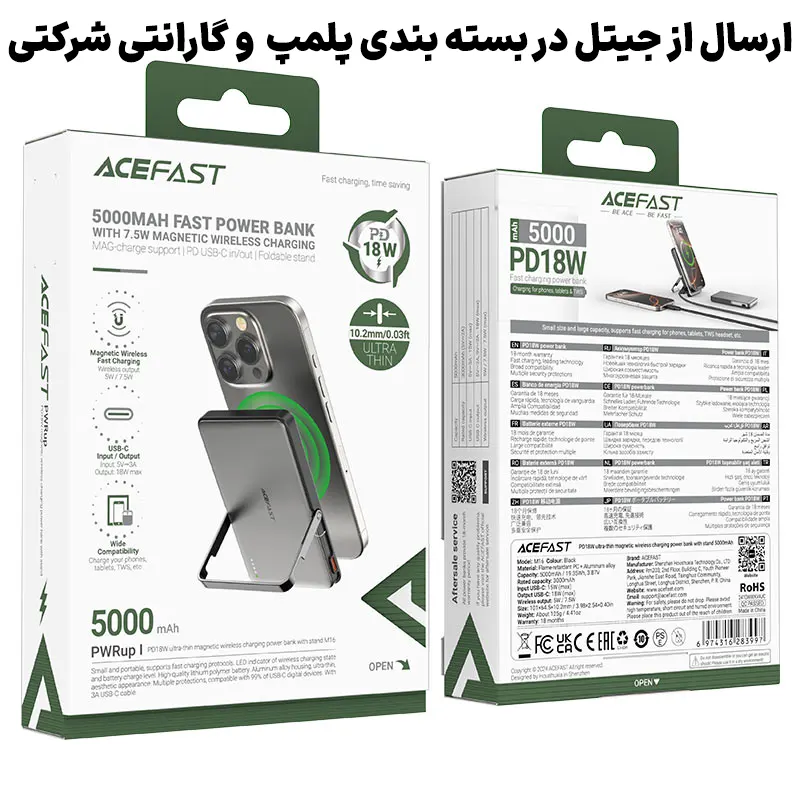 | نام/مدل | ACEFAST M16 PD18W 5000mAh Magnetic Power Bank (اورجینال) |