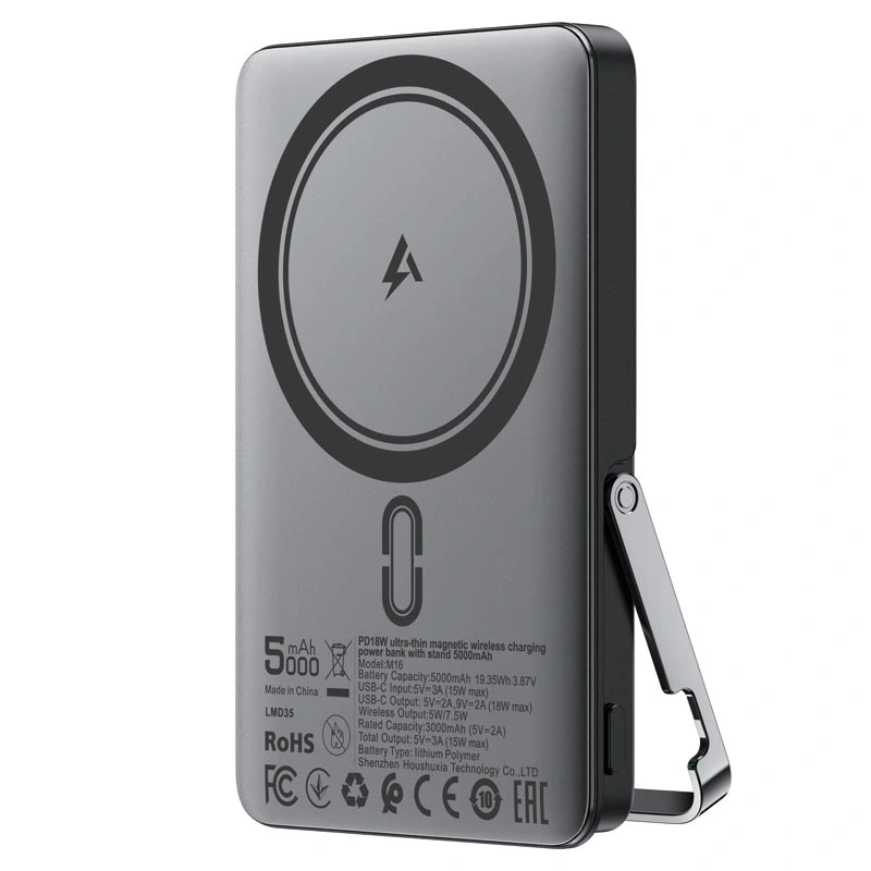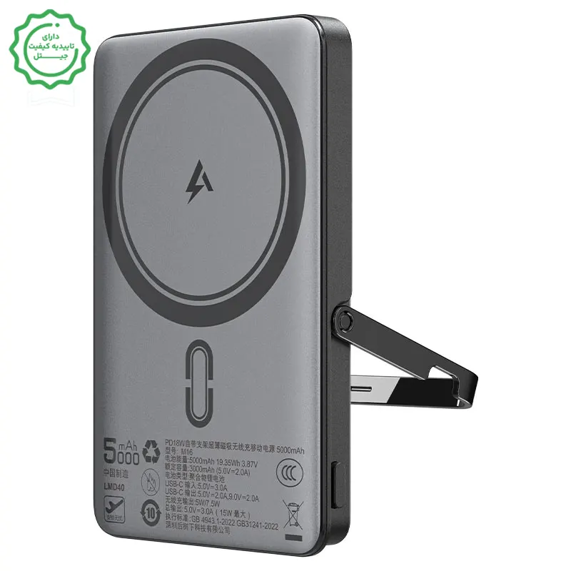 پاوربانک مگ سیف 5.000 میلی آمپر به توان 18 وات PD با استند مدل M16 (نسخه اورجینال + گارانتی شرکتی)