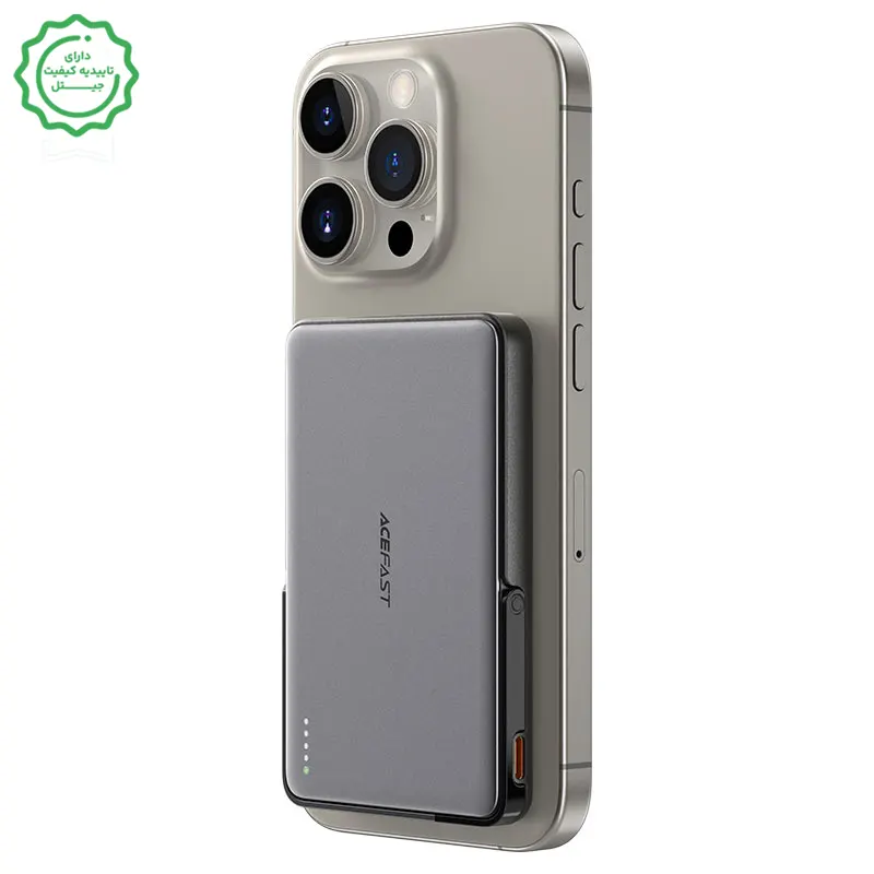 دنبال یک پاوربانک واقعاً جیبی و سبک هستی که هم مگنتی بیسیم شارژ کند، هم سیمی سریع PD ۱۸W بدهد و هم گوشی را روی استند تاشو نگه دارد؟پاوربانک استنددار فوقباریک ACEFAST M16 دقیقاً برای همین ساخته شده: ظرفیت ۵۰۰۰mAh (نامی ≈ ۳۰۰۰mAh)، بدنهی ۱۰.۲ میلیمتری از PC دیرسوز + آلیاژ آلومینیوم، USB-C دوسویه (in/out)، نمایشگر LED وضعیت باتری/وایرلس و حفاظتهای ایمنی کامل. سبک، مینیمال و همیشه آماده.