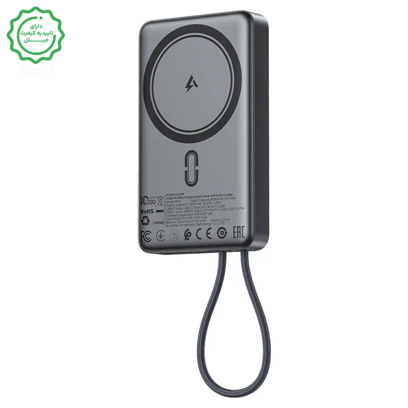 پاوربانک مگ سیف 10.000 میلی آمپر به توان 22.5 وات PD با کابل مدل M18 (نسخه اورجینال + گارانتی شرکتی)