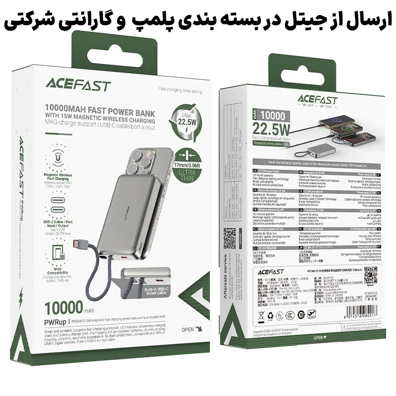 | نام/مدل | ACEFAST M18 PD22.5W 10000mAh with wireless & cable (اورجینال) |