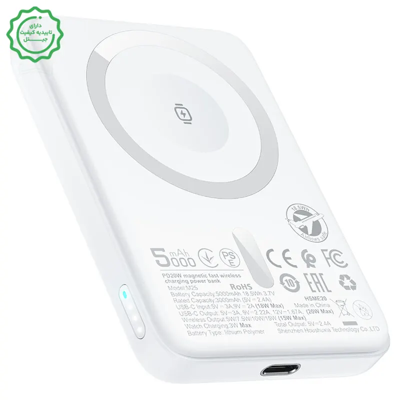 پاوربانک مگ سیف 5.000 میلی آمپر به توان 20 وات PD مدل M25 (نسخه اورجینال + گارانتی شرکتی)