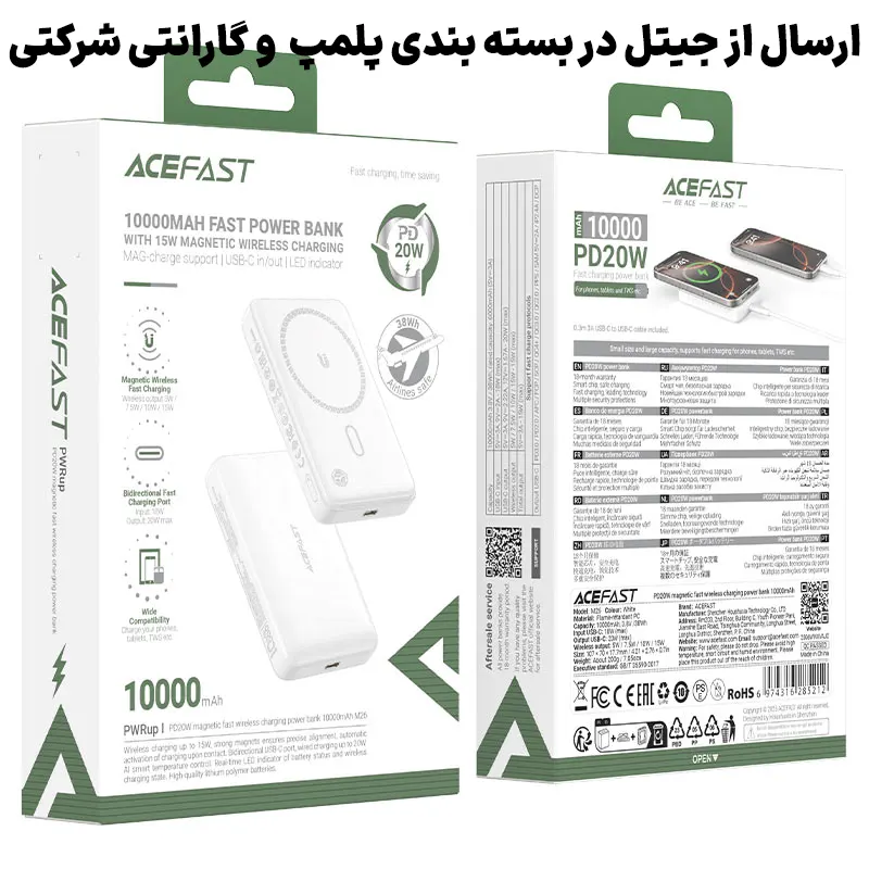 | نام/مدل | ACEFAST M26 20W 10000mAh Magnetic Wireless Power Bank (اورجینال) |
