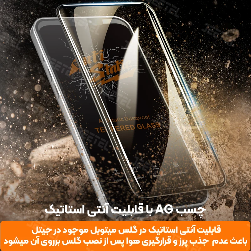 بصورت کلی به گلس هایی که ضدپرز و گردوغبار باشند anti static میگویند و این خاصیت کاربردی هنگام نصب محافظ صفحه نمایش ضدضربه و ضدخش به کمک شما می آید و با وجود گلس آنتی استاتیک اورجینال سامسونگ اس 25 اف ای شما دیگر نگران وجود پرز و گردوخاک برروی ال سی دی گوشی تان نخواهید بود.