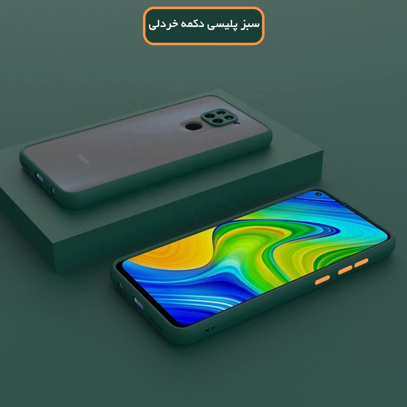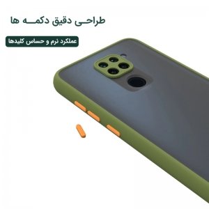 کاور و قاب گوشی مناسب برای Xiaomi Redmi Note 9 هیبریدی دکمه رنگی مدل پشت مات محافظ لنزدار