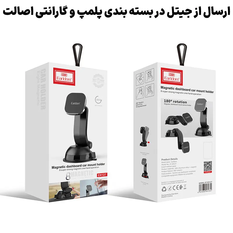 پایه نگهدارنده مغناطیسی داشبورد ایرلدوم EH127 با نصب آسان، 8 آهنربای قوی و چرخش 360 درجه، ایمنی و راحتی استفاده از گوشی موبایل در خودرو را تضمین میکند.