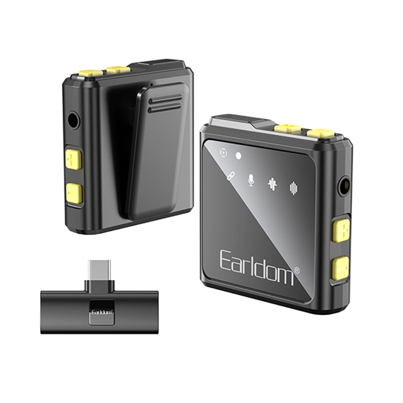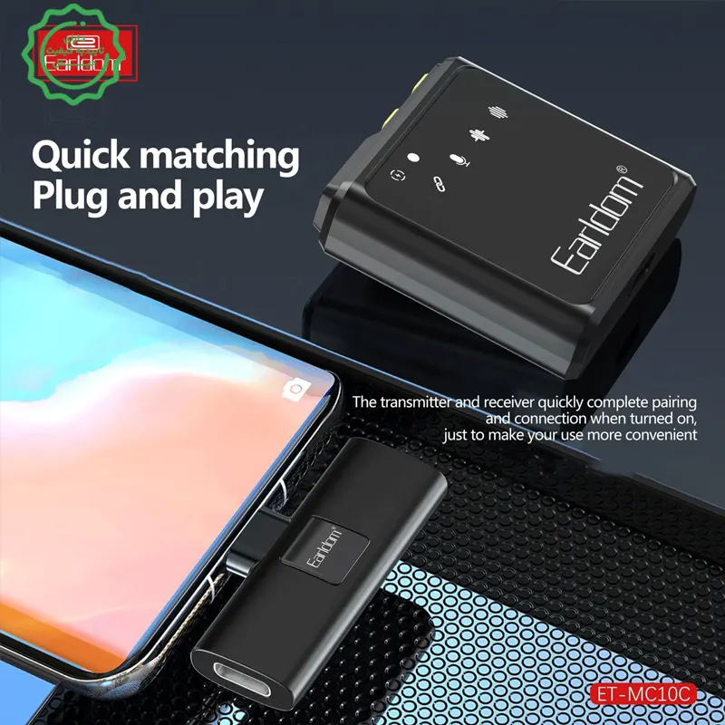 میکروفون وایرلس یقهای Type-C Earldom MC10C — صدای شفاف، نویزکم، برد ۱۵–۲۵ متر، آماده برای ضبطِ حرفهای با موبایل