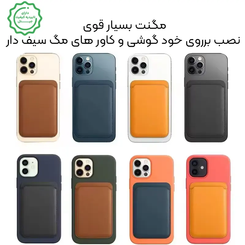 سازگاری: آیفونهای MagSafe (۱۲ و جدیدتر) + قابهای مگسیف تمام گوشی ها و برندهای متعدد.