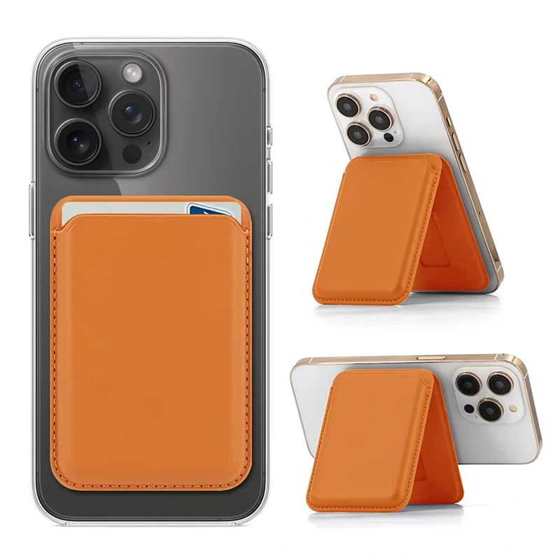 اگر دنبال یک اکسسوری هستی که هم کیف مگسیف استندشو جاکارتی باشد، هم هولدر/استند تاشو برای تماشای فیلم و تماس تصویری، و هم باکیفیت و بادوام بماند، مدل Wallet Card دقیقاً برای توست. این کیفِ باریک با قدرت مگنت با چسبندگی قوی به پشت آیفونهای مجهز به MagSafe میچسبد، بدون لقزدن، و همزمان تا ۲–۳ کارت (بانکی، هویتی، حملونقل) را امن نگه میدارد. جنس چرمی (Vegan Leather) ظاهر لوکس و لمس نرم میدهد؛ فریم چرمی هم استحکام طولانیمدت را تضمین میکند—همهی اینها در قالبی مینیمال، نازک و سبک که فرم اصلی گوشی را حفظ میکند.
