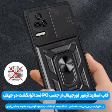 قاب ضدضربه آهنربایی شیائومی Poco F4 5G مدل محافظ لنزدار کشویی مانند یک پوشش زرهی گوشی را کاور میکند و در تمام شرایط محیطی مانند بادیگاردی کاربلد و حرفه ای از پس وظایف خود برمی آید.متریال ساخت این قاب ضد ضربه هولدر دار با استانداردهای نظامی همسان است و از مواد باکیفیت در ساخت و تولید آن استفاده شده است.علاوه بر این امکانات ، از ظاهر و استایل خاصی برخوردار است جوری که تمام خریداران با سلایق مختلف نسبت به طراحی و ظاهر تانک مانند این کیس بینظیر نظر مثبتی دارند.