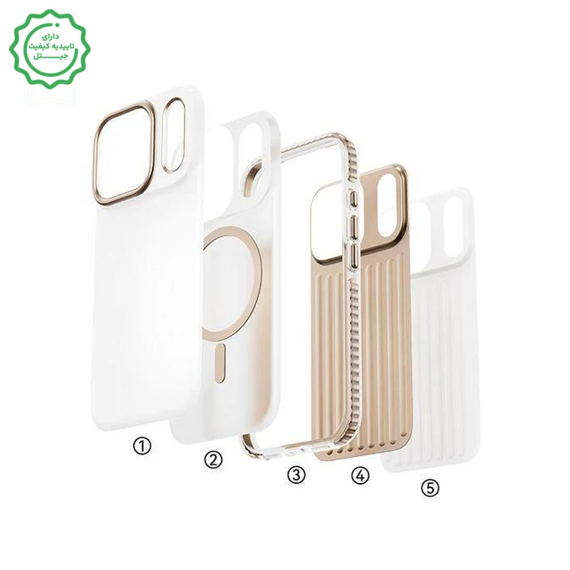 مگسیف یکپارچه (MagSafe Ring): آهنربای حلقهای دقیقاً در دل قاب تعبیه شده تا چسبندگی مطمئن به شارژرهای مگسیف، هولدرهای مغناطیسی، کیفهای مغناطیسی و پاوربانکهای سازگار فراهم شود—بدون لقزدن یا افتادن.