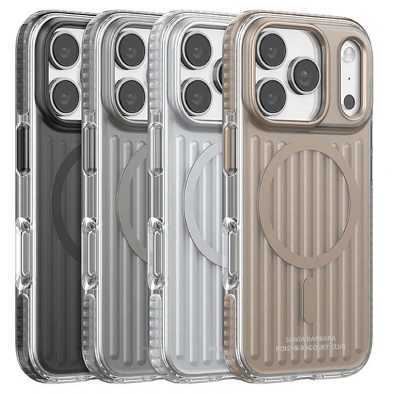 اگر دنبال کاور اورجینال مگ سیف iPHONE 17 Pro هستی که هم شیک و لوکس به نظر برسد و هم واقعاً محافظت جدی ارائه کند، کاور SANTA BARBARA POLO RACQUET CLUB با الگوی عمودی «طرح چمدانی» دقیقاً برای همین لحظه ساخته شده: حلقهٔ مغناطیسی مگسیف یکپارچه برای اتصال محکم به شارژر و اکسسوریها، فریم TPU با ایربگ در چهار گوشه برای جذب ضربه، لبههای برجسته دور نمایشگر و ماژول دوربین، و پشت سخت با پوشش ضدخش که در vitrine و عکسهای محصول چشمک میزند. چهار رنگ Silver / Grey / Desert Ti / Black سلیقههای مختلف را پوشش میدهد و با استایل پریمیوم آیفون 17 پرو هماهنگ است.