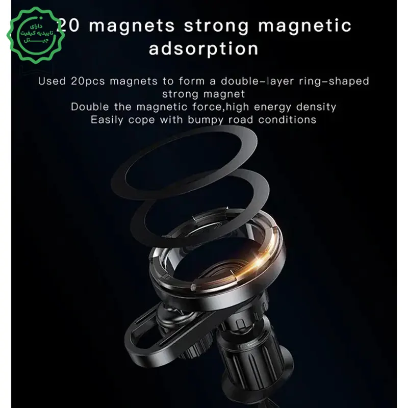 قدرت نگهداری ممتاز: ۲۰ مگنت در حلقهی دولایه—اتصال پایدار حتی در دستانداز.