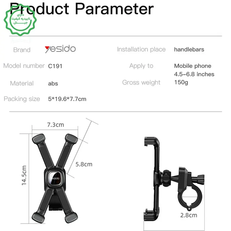 | نوع و مدل | YESIDO C191 (Bicycle/Motorcycle Phone Holder) |