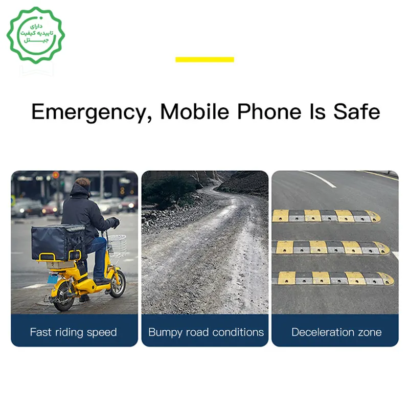 گیرهگیری چهارگوشهٔ دستگاه: دربرگیری مطمئن چهار طرف گوشی برای کاهش تکانهای ناگهانی.