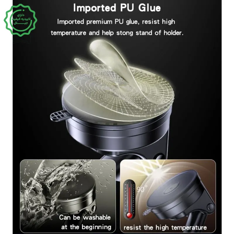مکندهٔ قفلدارِ قوی: چسبندگی مطمئن روی داشبوردهای صاف و شیشه؛ نصب و جداسازی سریع.