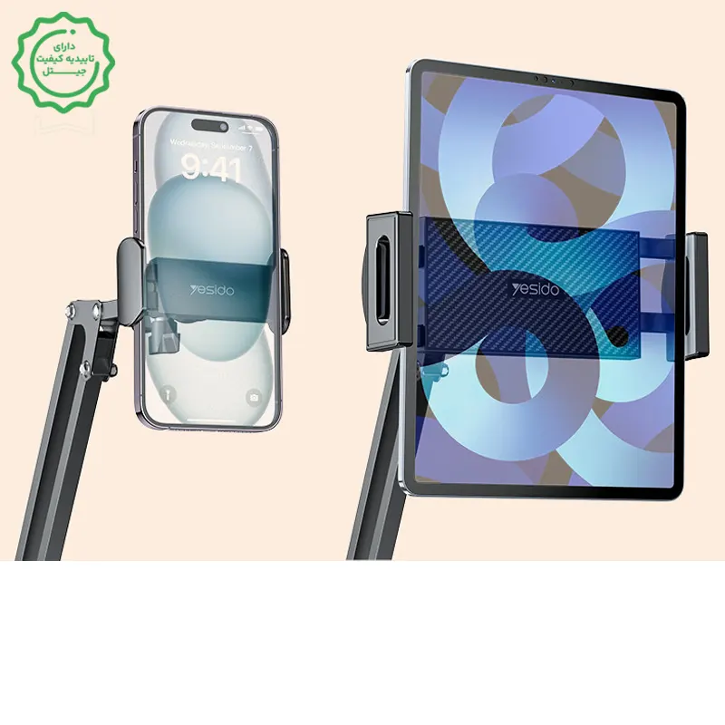 هولدر رومیزی گیرهای تولید محتوا یِسیدو Yesido C296 — بازوی چندبخشی ۳۶۰°، گیرهٔ تخت/میز، مناسب موبایل و تبلت تا ۱۲.۹ اینچ