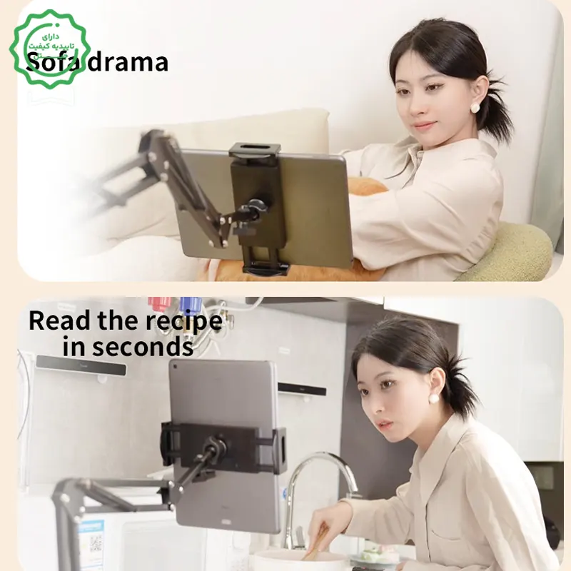 مطالعه و دستور پخت: نگهداشتن تبلت بهصورت ثابت کنار میز کار یا گاز.