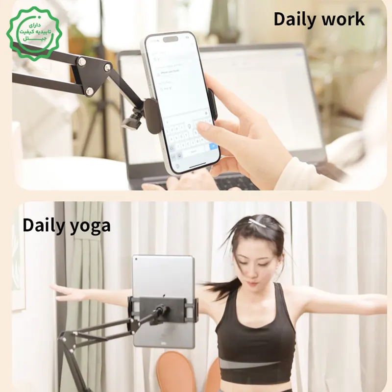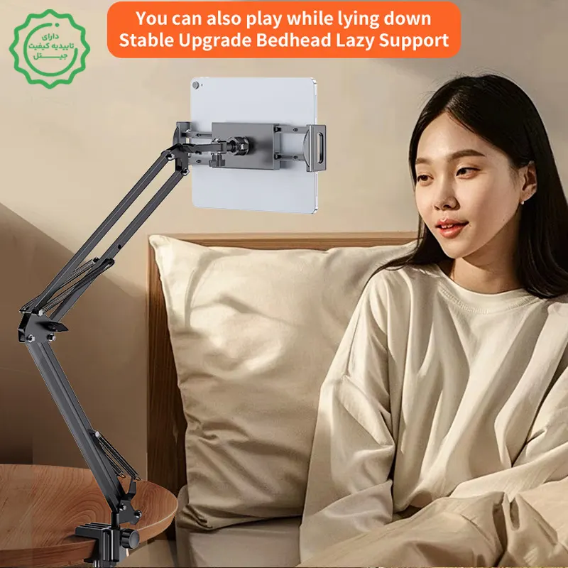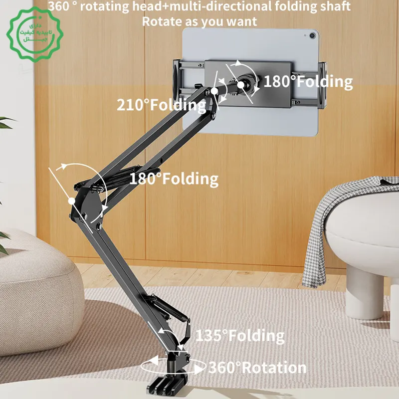 با تبلت سنگین هم کار میکند؟ بله؛ برای تبلتهای بزرگ بازو را بیشازحد باز نکن و پیچهای مفصل را محکمتر کن.
