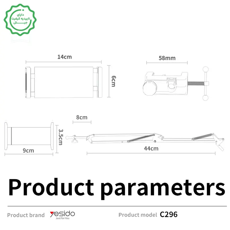 هولدر نگهدارنده تولید محتوا مدل رومیزی گیره ای از برند یسیدو مدل Yesido C296 (100% اورجینال)