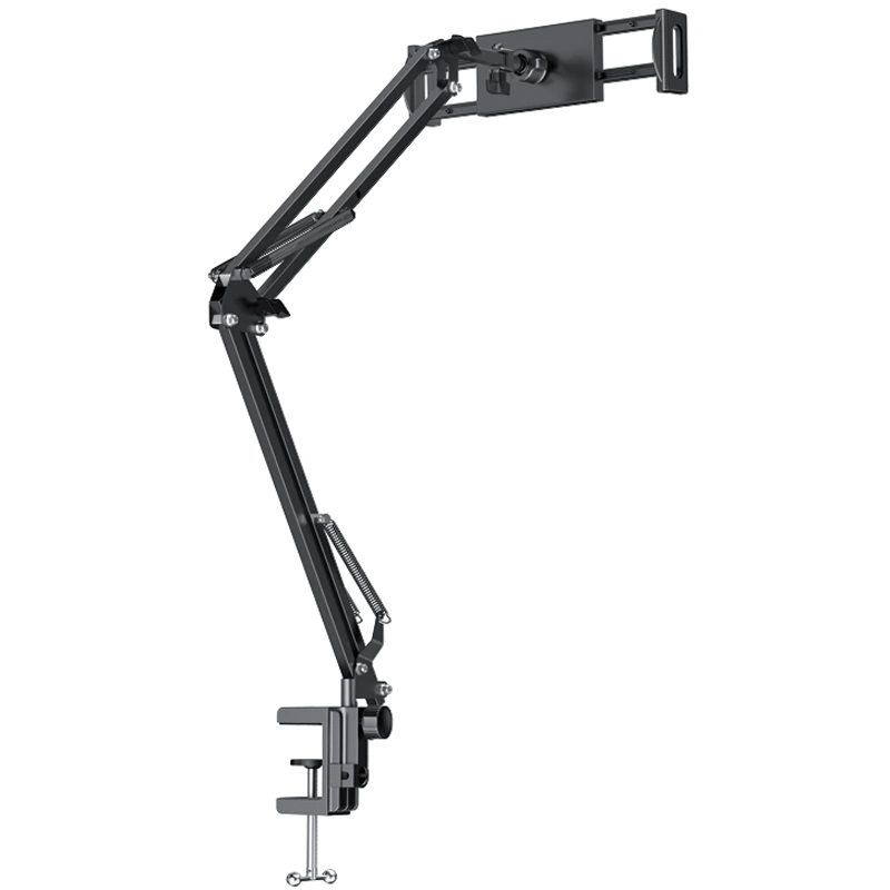 نکتهٔ حرفهای: هرچه بازو بیشتر باز شود، مرکز ثقل دورتر میشود؛ برای پایداری بهتر، وزن دستگاههای بزرگ (مثل تبلت ۱۲.۹") را با بازوی کوتاهتر یا زاویهی نزدیکتر به پایه تنظیم کن.