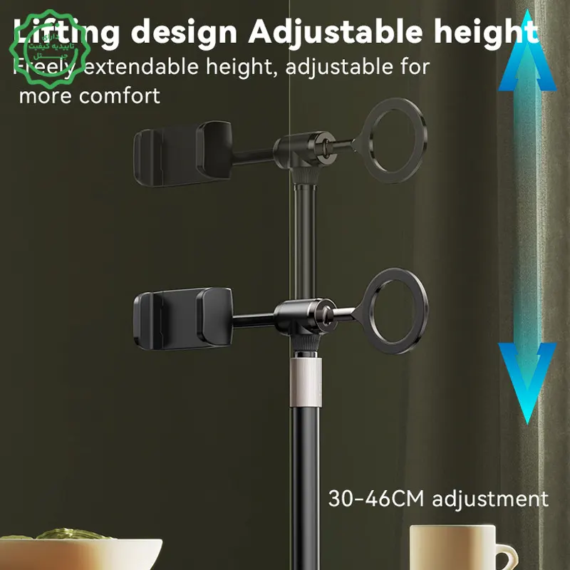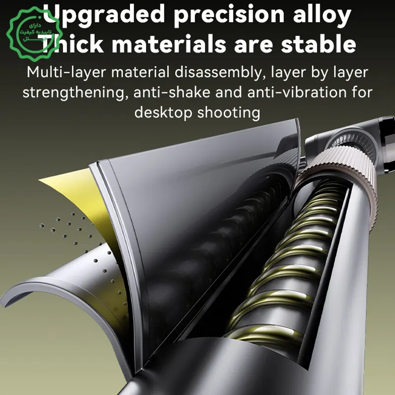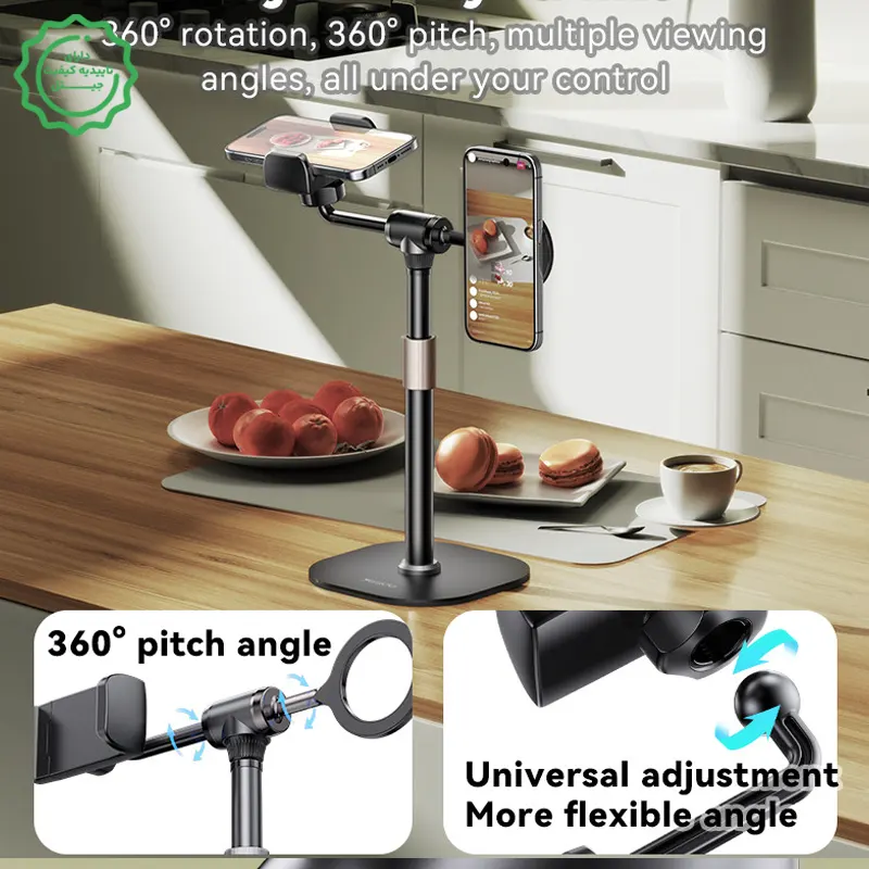 ارتفاع رومیزی ایدئال (30–46cm): همسطحسازی دوربین با چشم برای تصویر حرفهایتر در جلسه/کلاس/لایو.