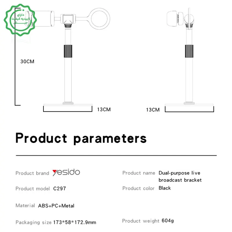 | نوع و مدل | YESIDO C297 (Dual-purpose Desktop Live Holder) |