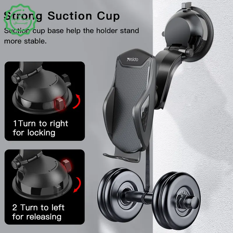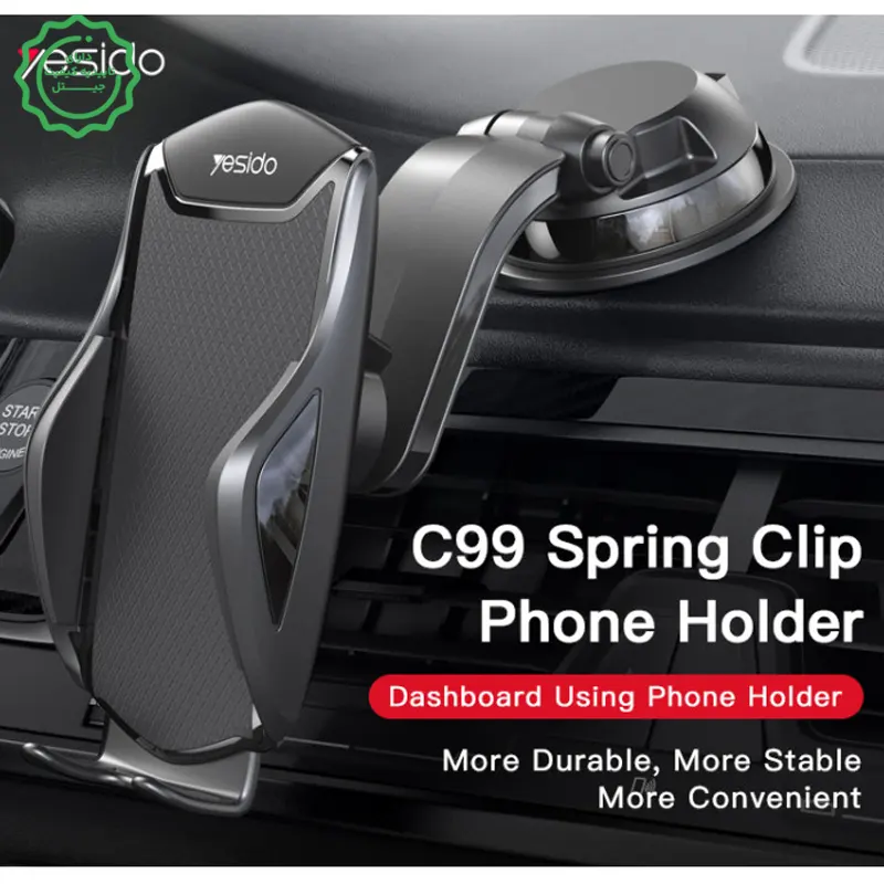 هولدر داشبوردی/شیشهای مکنده یِسیدو مدل YESIDO C99— چرخش ۳۶۰°، گیره فنری مطمئن، نصب روی سطوح صاف
