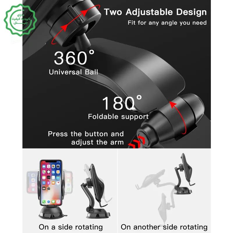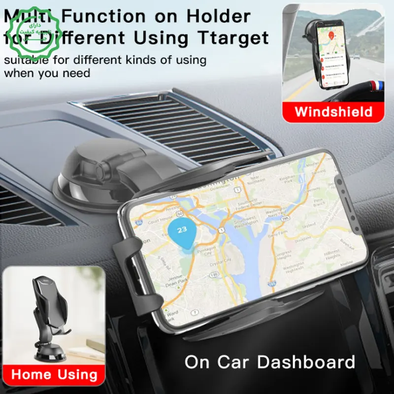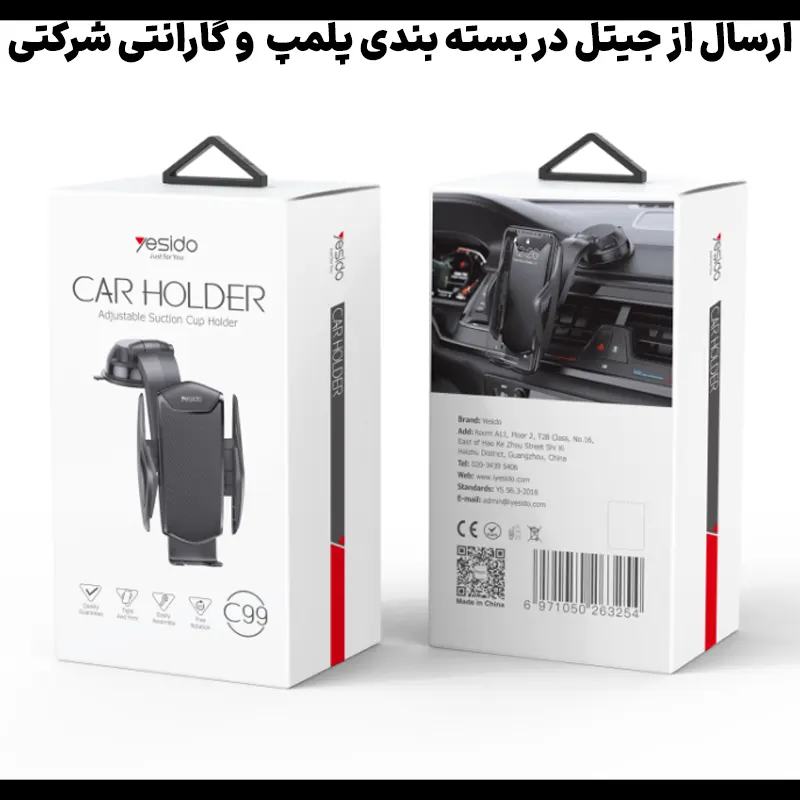 | اقلام داخل جعبه | هولدر + پایه مکنده + دفترچه راهنما (بسته به سری تولید) |