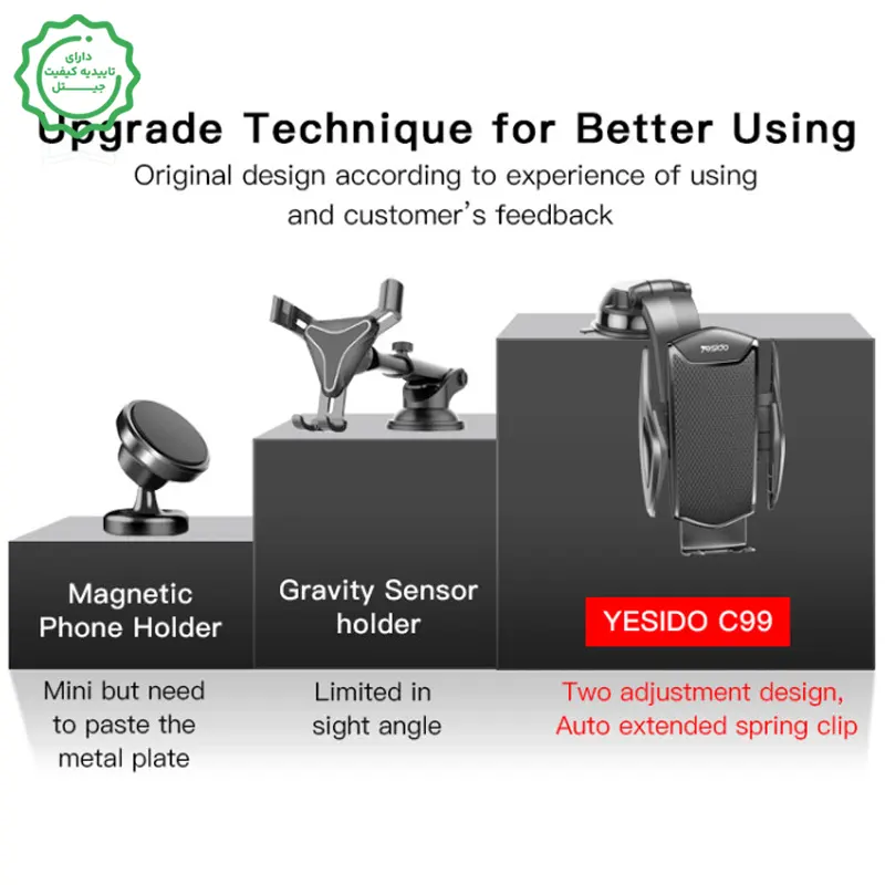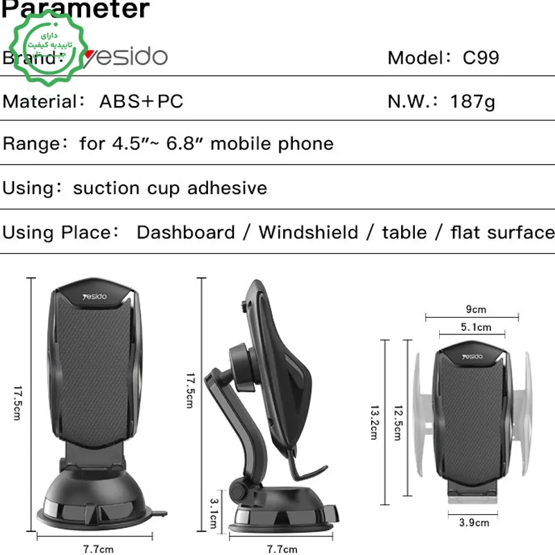 اگر نصب روی چند سطح (داشبورد/شیشه/میز) برایت مهم است، C99 یک گزینهی چندکاره و اقتصادی است.