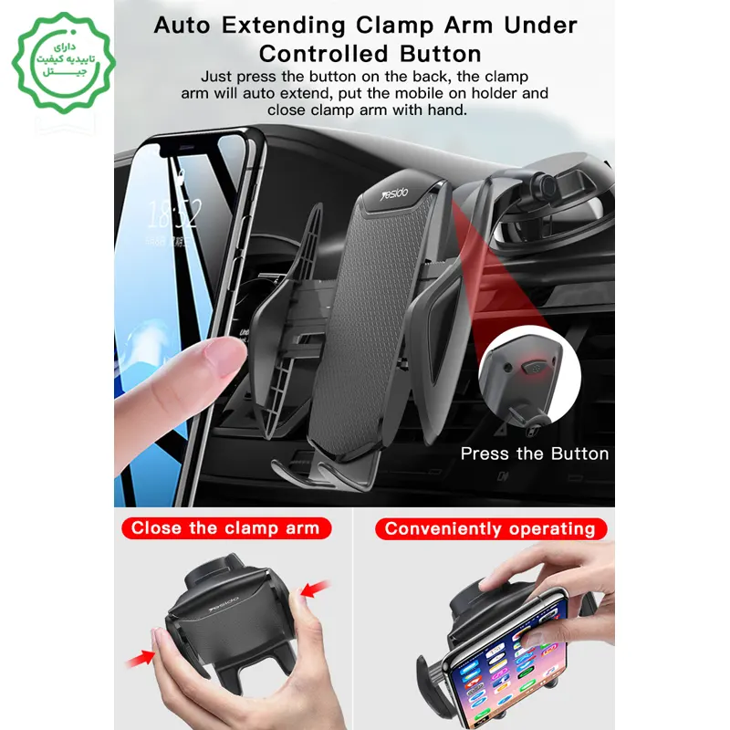 پایه نگهدارنده ماشین مدل داشبوردی مکنده از برند یسیدو مدل YESIDO C99 (100% اورجینال)